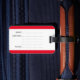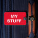 Graciosa etiqueta de equipaje rojo con 'Mis cosas' escritas en ella