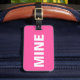 ¡Esta divertida etiqueta de equipaje rosa lo dice todo! Dice "mío" en el frente alto y claro en blanco contra el fondo rosado. Puede personalizar fácilmente la parte trasera de esta divertida etiqueta de equipaje de mina con los detalles necesarios.