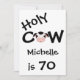 Invitación a la fiesta de cumpleaños número 70 de la vaca sagrada personalizada en blanco y negro para hombres y mujeres.