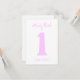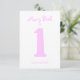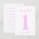 La divertida invitación de la primera fiesta de cumpleaños incluye un gran número 1 en rosa. Los padres de los invitados se reirán del texto humorístico.