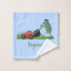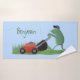 Una extraña rana verde cortando el césped al estilo personalizado.