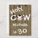 Invitación a la fiesta de cumpleaños número 30 de la vaca sagrada personalizada sobre el fondo de madera de grano para hombres y mujeres. Algunos gráficos de Trina Clark en DigiScrapKits.com~.