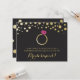 Funny Bridesmaid Plantillas de tarjetas de propuesta. Esta tarjeta de honor de la dama de honor incluye las palabras "¡No puedo esperar a verte sorprendido cuando te pido ser mi empleada de honor!" en un fondo negro con el ilustracion de un anillo de compromiso y adornos de oro falsos. Puedes cambiar las palabras para personalizar tu invitación para tu dama de honor, dama de honor y chica de flores. Diseñado profesionalmente por Victoria de VG Invita.