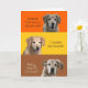 Graciosa tarjeta de cumpleaños con recuperadores dorados. Esta tarjeta está en personalizable con su mensaje y/o nombre personalizado.