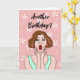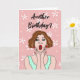 ¿Otro año mayor? Gracioso humor de vejez de la tarjeta de cumpleaños. La dama retro dibujada a mano sorprendida de que otro año haya pasado. Cuidada para un amigo o un familiar.