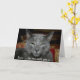 Graciosa tarjeta de cumpleaños feliz con gato gris