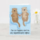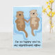 Graciosa y romántica tarjeta de cumpleaños feliz con nutrias flotando y tomándose de la mano. Personalizar el texto en la parte delantera o en el interior del mensaje.