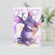 Graciosas tarjetas de cumpleaños felices con un ratón morado feliz comiendo helado - pintura MIGNED - o agregar su texto / nombre