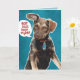 ¿Quién puede resistir este ilustracion de un adorable cachorro pastor alemán con el oído cogido y una burbuja de charla que dice: "60? ¿Escuché bien?". Dentro de la tarjeta se puede leer: "¡De ninguna manera! En los años de perro eso sería... ¡No importa, gracias perro estás vivo! ¡Feliz cumpleaños!" ¡Traición con un giro!