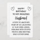 ¡Haga que el día especial de su pareja sea aún más memorable con esta divertida tarjeta de cumpleaños para marido o mujer! Esta tarjeta, repleta de humor descarado y bromas juguetonas, es perfecta para parejas que aman compartir una risa. Ya sea que esté celebrando el cumpleaños de su marido o esposa, esta tarjeta le agrega un giro desenfadado a la ocasión. Ideal para los que disfrutan de un poco de sass y ingenio, es la manera perfecta de mostrar su amor mientras mantienen la celebración divertida y única! Perfecto para un regalo de cumpleaños humorístico e inolvidable.