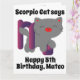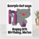 Celebra el cumpleaños de tus seres queridos de Scorpio zodiac con esta genial tarjeta de cumpleaños personalizada de un gato gracioso de Scorpio. Puede cambiar el texto haciendo clic en el área "Haga clic para más Personalizar" o "Personalizar o Editar diseño" y utilizar nuestra herramienta de diseño para cambiar el tamaño, rotar, cambiar el color del texto, agregar texto y más.