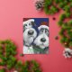 Grandes ojos. Grandes corazones. Barbas más grandes. Esta tarjeta de Navidades dibujada a mano contiene dos exfoliantes crías en sombreros de Santa, mirando hacia el cielo bajo una ráfaga de nieve brillante de Relieve metalizado de plata o oro. Añade tu apellido al frente para un toque personalizado que es igual de dulce y tonto. Impreso a partir de un lápiz original (sin IA a la vista), es la tarjeta de vacaciones perfecta para los amantes de los perros, las familias y todo aquel que aprecie un poco de piel y pelusa festivas. ¡Garantizado para conseguir rabos de cola y sonrisas por todas partes!