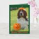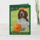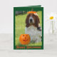 Graciosa tarjeta de Halloween con sabio hetero y calabaza