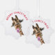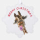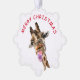 Graciosa tarjeta de ornamento navideño con jirafa