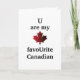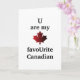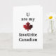 ¡Oh, los canadienses y sus estadounidenses! Esta tarjeta es el San Valentín perfecto para el canadiense en tu vida. En el frente aparece la declaración "Eres mi canadiense favorito" con una icónica hoja de arce roja. El mensaje interno dice simplemente "Feliz Día de San Valentín", pero puede ser personalizado o eliminado por completo.