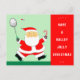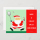 Creativas tarjetas de vacaciones con Navidades con temas de bádminton con Santa jugando badminton.