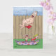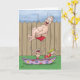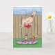 Graciosa tarjeta de cumpleaños personalizado que representa a un adulto demasiado entusiasta en un día caluroso de veranos haciendo una bola de cañón en la piscina infantil.