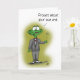 Tarjeta de cumpleaños divertida con un ilustracion personalizado gracioso de una rana mafiosa con un mensaje humorístico.