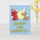 Una graciosa tarjeta de cumpleaños personalizado con una imagen personalizado de un perro y una boca de incendios con la boca de incendios con un poco de preocupación por lo que está a punto de pasar mientras el perro la mira favorablemente desde lejos.
