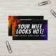 Graciosa tarjeta de visita HVAC que hará que los clientes se rien con el gracioso lema. Una manera segura de hacer que los clientes recuerden usted es mostrándoles este divertido lema HVAC y empezando con una risa. Iniciar una relación de cliente a largo plazo de la manera correcta con una primera impresión que dejará una impresión duradera. Excelente para tantas industrias. Impresiona con tu primera impresión y hace que los clientes te recuerden! Tu esposa se ve caliente, es hora de arreglar el HVAC.... También puede cambiarse a Usted se ve caliente!...o cualquier lema de su elección.