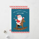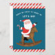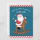 Creativas tarjetas de vacaciones para Navidades ecuestres para amigos y familia con Santa montando un mecedor.