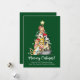 Envíe sus saludos navideños este año con este lindo diseño personalizado que presenta un adorable ilustracion de nueve gatos formando un árbol de Navidad con luces, una estrella en la parte superior y las palabras "¡Meowy Catmas!" sobre un fondo verde. Personalízalo con tu(s) saludo(s) y nombre(s).