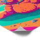 Divertido poster tropical futurista tipo ciberpunk capybara. Decoración de arte animal única y colorida.