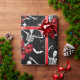 Graciosos esqueletos bailando y papel envuelto de arco rojo con detalles de telaraña.