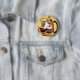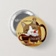 Agradable para los amantes del café y del gato: un botón de diseño divertido con un lindo gatito llegando a la crema de un quequito contra una lata de café y fondo de taza.