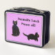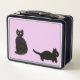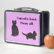Gracioso arte de gatos con un gato negro sentado y el otro gatito que se va y el texto "¡Almuerzo de Hannah, patadas!". Personalízalo con tu propio nombre y color, perfecto para los niños amantes del mascota.