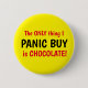 Diseño diciendo ¡Lo ÚNICO QUE PÁNICO COMPRO ES CHOCOLATE! Texto rojo y negro. Divertida insignia relacionada con Covid para cualquier amante del chocolate. Personalice fácilmente este diseño editando el texto de la plantilla o cambie el color de fondo de un amarillo brillante. ¡Gracias por ver mis diseños!