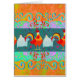 Gracioso Rooster Hen Funky Chicken Farm Animal Gifts sobre un divertidísimo fondo de collage de verde azulados y naranjas remolinos, florecientes y patrones divertidos. Estos regalos graciosos de gallinas son geniales para todos.