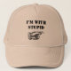 Elige tu color favorito de este gracioso gorra con texto: "Estoy con estupidez" y señalando con la mano.