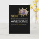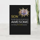 Esta graciosa tarjeta de cumpleaños para un hijo que dice, "Hijo, no hay idea de cómo te volviste tan genial pero te llevaste el crédito de todos modos" en un fondo negro. Es la mezcla perfecta de sarcasmo y amor - ideal para los padres que quieren celebrar el cumpleaños de su hijo con humor y personalidad. Ya sea que estés comprando a un adolescente, un hijo adulto o un nuevo papá, esta desenfadada tarjeta de cumpleaños le da un mensaje memorable que de verdad le gustará leer. Ideal para divertidas tarjetas de cumpleaños de padre a hijo y una adición destacada a cualquier regalo.