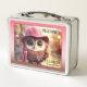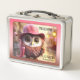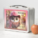 Cajera para almorzar con un ilustracion de una lechuza adorable enmarcada por una muchacha rosa.