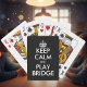 Divertido Mantener la calma y jugar a las cartas de bridge. Haz que tu propio gracioso mantenga la calma y siga con el diseño de la parodia. Plantilla de tipografía de keepcalmandcarryon con corona. Algunos ejemplos de juego de cartas de mantenimiento tranquilo: mantener la calma y el fiesta. Mantente tranquilo y juega al póquer. Mantente tranquilo y juega al puente. Crea tu propia parodia con este famoso lema. Color del fondo del personalizable. Una idea de regalo para hombres, mujeres y niños.