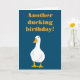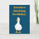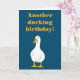 Personalizar tanto el mensaje en la parte frontal como en el interior de esta tarjeta para crear el saludo perfecto para cualquier ocasión. Esta tarjeta presenta un simple ilustracion de un pato blanco con un billete naranja y pies contra un fondo azul marino con su mensaje en coordinación naranja. Diviértete creando tu propio juego de palabras con la temática del pato o deja el divertido "¿Otro cumpleaños del pato?" saludo como está.
