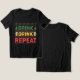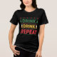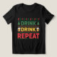 Las camisetas de mujeres con el guión de cerveza de Navidades feas presentan el texto "Repetición de bebida" en una moderna tipografía de escritura de escritura con cuchillo de invierno acentuada con renos, árboles de Navidad y tazas de cerveza. Perfecto para Navidades, fiestas y celebraciones. Diseñado por ©Evco Holidays www.zazzle.com/store/evcoholidays