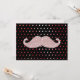 Curioso bigote giratorio rosado con coloridos puntos de polka rojos y blancos Patrón de un diseño retro fresco con un bigote gracioso de los años 80 sobre fondo negro. La idea perfecta de regalo de glamour para ella en cada ocasión