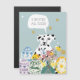 Tarjeta de Pascua dálmata personalizada. Graciosa tarjeta de Pascua para la caza de huevos de perro. ¡Perfecto ilustracion de perros abstracto para los amantes del perro! Un lindo y gracioso perro manchado de dálmatas con estrellas extravagantes, huevos de Pascua y flores de primavera en un diseño de jarrón. Mamá de perro dálmata, papá de perro dálmata, esta es para ti. También ilustracion dálmata para niños.