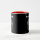 Funny tazón de café de oficina de diseño de dos caras con un indicador de combustible para el tema del automóvil que mide cuánto café has tenido con un lado lleno y el otro vacío en un estilo de dos tonos rojo y negro fresco. Un regalo de novedad humorístico para un compañero de trabajo o disfrute de la diversión. Hace un gran regalo ejecutivo.