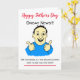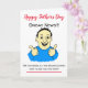 Divertido personalizado de un hombre sonriente para el Día del Padre. Papá tiene una enorme sonrisa en la cara y los pulgares hacia arriba con la noticia de que todos sus nietos pueden visitarlo. El texto actualmente dice 'Noticias geniales - podemos traer a todos los nietos para que los vean este año' - usted puede personalizar fácilmente esta tarjeta editando el texto de la plantilla. ¡Gracias por ver mis diseños!