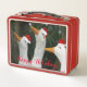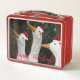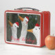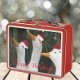 Adultos y niños por igual apreciarán este metalizado local de comida de estilo antiguo para las vacaciones que presenta una imagen caprichosa de patos blancos graciosos con gorras de Santa Claus rojas. Si lo desea, puede cambiar el color de su mesa de almuerzo. ¡Un diseño divertido para las vacaciones!