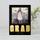 Moderno y elegante Relieve metalizado de oro GRAD Clase 2025 con invitación de graduación fotográfica. Celebra tus logros con nuestra invitación de graduación de Relieve metalizado de oro. Este diseño moderno y elegante muestra la palabra "GRAD" en Relieve metalizado dorado, añadiendo un toque de sofisticación. La invitación también incluye un cautivador conjunto de fotos con un elegante fondo negro, creando un sorprendente contraste. En la parte de atrás, encontrarás otra foto muy apreciada y todos los detalles importantes de la graduación, asegurando que esta invitación se convierta en un tesoro para los años venideros. La cobertura se ha diseñado utilizando algunos activos de Freepik.com