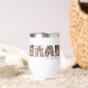 Un regalo perfecto para el pasto. Este tumbler de vino grad presenta "GRAD" en grandes letras en negrita con una foto mostrada en cada una de las letras. Cada carta tiene una divertida sombra de color y está personalizada con el nombre del graduado y el año de graduación. Diseño de Moodthology Papery.