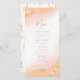 Esta suite boda de moda con su cálida paleta de colores soleados, su letra manuscrita y sus delicados arreglos de flores silvestres tiene un aspecto atemporal y sofisticado que impresionará a sus huéspedes y le ayudará a hacer su día especial inolvidable. Este llamativo menú boda, que se muestra aquí sobre un fondo degradado de melocotón a blanco con un claro patrón de flor silvestre al revés, proporciona una plantilla para añadir fácilmente sus selecciones de menú. Busque ID1023 para ver todos los productos de este conjunto de bodas.