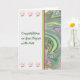 Tarjeta de felicitaciones por un título en artes. Esta tarjeta de bonito tiene una inserción artística en el costado, el fondo es blanco (el color del título para las Artes) y hay una fila de tapones de graduación encima y debajo de la escritura en el frente. Gracias al hungryjpeg por algunos de los elementos del diseño.