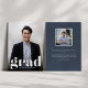 Una invitación de graduación fotográfica simple y moderna con un toque minimalista presenta "grad" a lo largo de la parte inferior, con el nombre de tu graduado y la escuela debajo, y su año de graduación trabajó en el diseño. Ideal para graduaciones de bachillerato, universidad o grado avanzado. Añade un mensaje personal a la parte posterior, junto con una foto adicional.