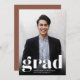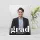 Una invitación de graduación fotográfica simple y moderna con un toque minimalista presenta "grad" a lo largo de la parte inferior, con el nombre de tu graduado y la escuela debajo, y su año de graduación trabajó en el diseño. Ideal para graduaciones de bachillerato, universidad o grado avanzado. Añade un mensaje personal a la parte posterior, junto con una foto adicional.