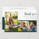 Una manera grandiosa y reflexiva de agradecer a tus amigos, familia y compañeros de trabajo que aparecieron para celebrarte, apoyarte y darte regalos. Estas fotos modernas gracias tarjeta con un audaz "gracias" en la parte superior serán apreciadas por todos, y hace un gran keepsake. Fotos en el frente y en el reverso de esta carta. Personalizar esto completamente con tus fotos, el nombre de la escuela o universidad, la clase y el mensaje de agradecimiento del personalizado.